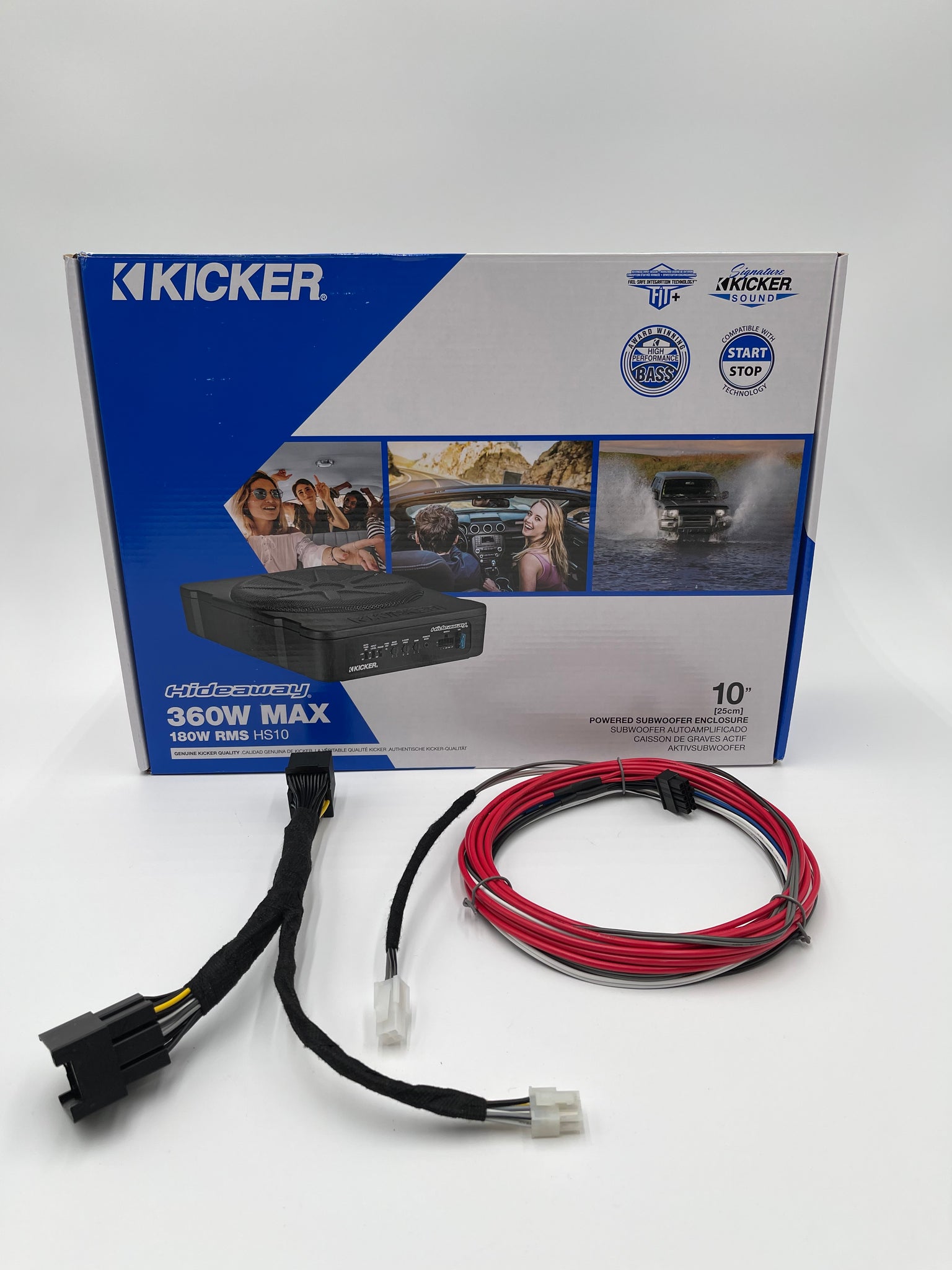 KIT 11-6 KICKER KEY 200.4 HARNESS ONLY & HS10 HIDEAWAY 10 INCH SUB WITH BUILT IN 180 WATT RMS AMP $550