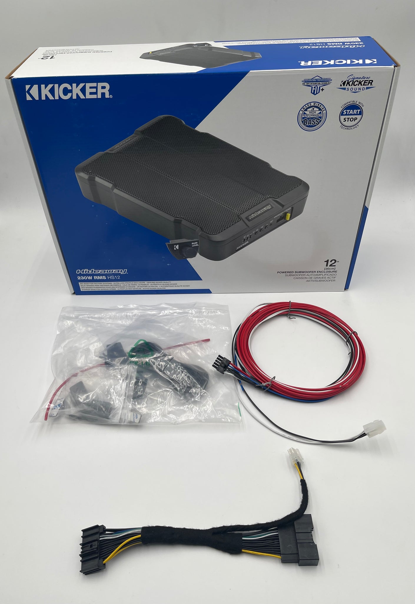 KIT 9 KICKER 51HS12 HIDEAWAY 12 INCH 230 WATTS POWERED SUB WITH HARNESS $525
